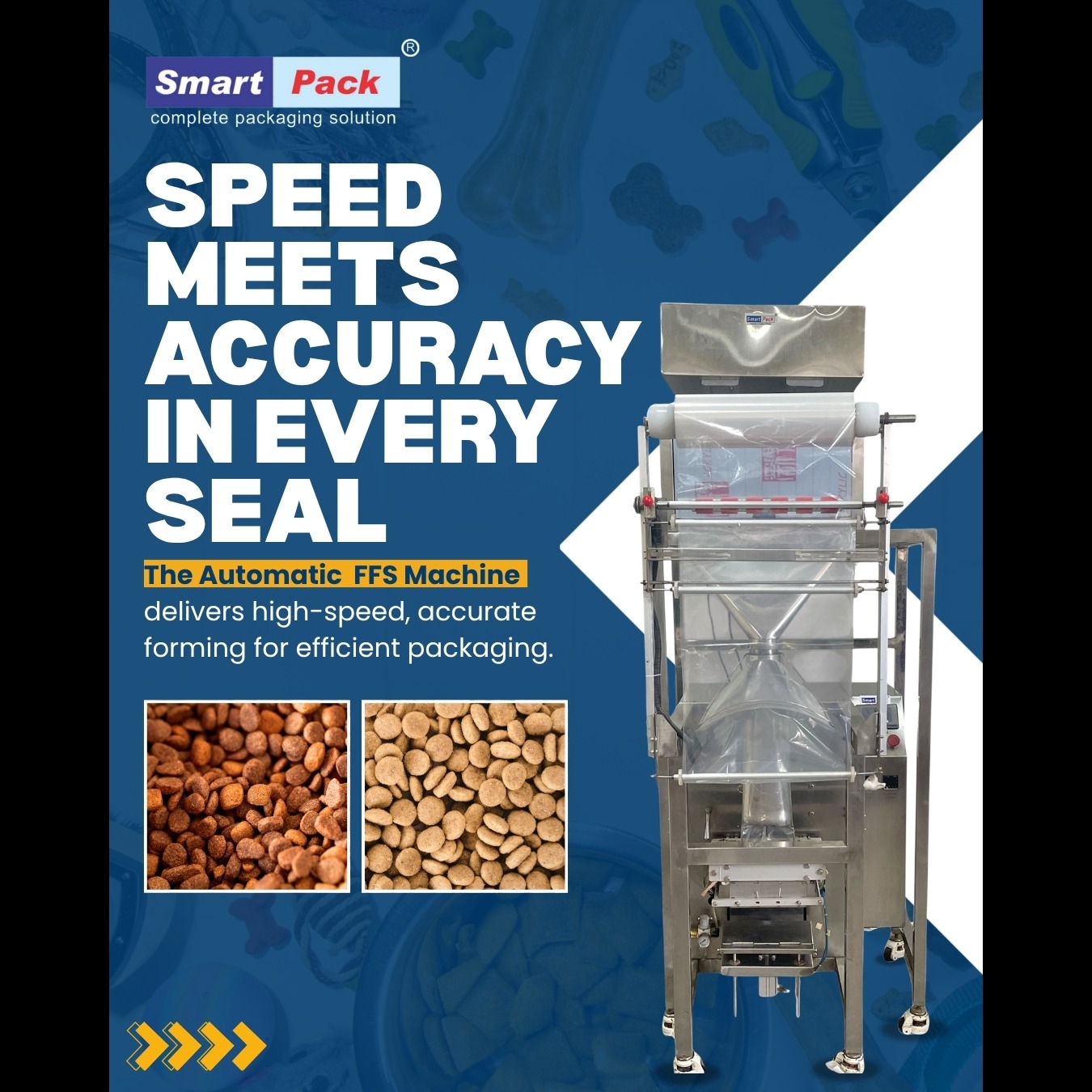 Efficiency is the backbone of any growing pet food brand. When you're dealing with high-volume products like kibble or specialized treats, manual bagging is a bottleneck you can't afford. Our Automatic FFS (Form, Fill, and Seal) Machine is engineered to turn that bottleneck into a competitive advantage. By automating the entire packaging process, this machine ensures that Speed meets Accuracy—delivering consistent, retail-ready pouches that lock in freshness and protect your brand's reputation. Key Features for B2B Success: High-Speed Throughput: Dramatically increases your daily output compared to semi-automatic or manual methods. Precision Forming: Creates professional, uniform pouches that stand out on retail shelves and in industrial warehouses. Hermetic Sealing: Superior sealing technology ensures every pack is airtight, maintaining product aroma and preventing contamination. Scalable Performance: Built for 24/7 heavy-duty industrial use, allowing your business to scale without compromising quality. At Smart Pack, we don't just provide machinery; we provide the reliability required for industrial growth. 🌐 Explore the Specs: www.smartpackindia.com 📞 Contact for Inquiries: 9109108483 📍 Smart Packaging Systems #FFSMachine #PackagingAutomation #PetFoodManufacturing #SmartPackIndia #BizHQ #IndustrialMachinery #SupplyChainEfficiency #B2BIndia #ManufacturingSolutions