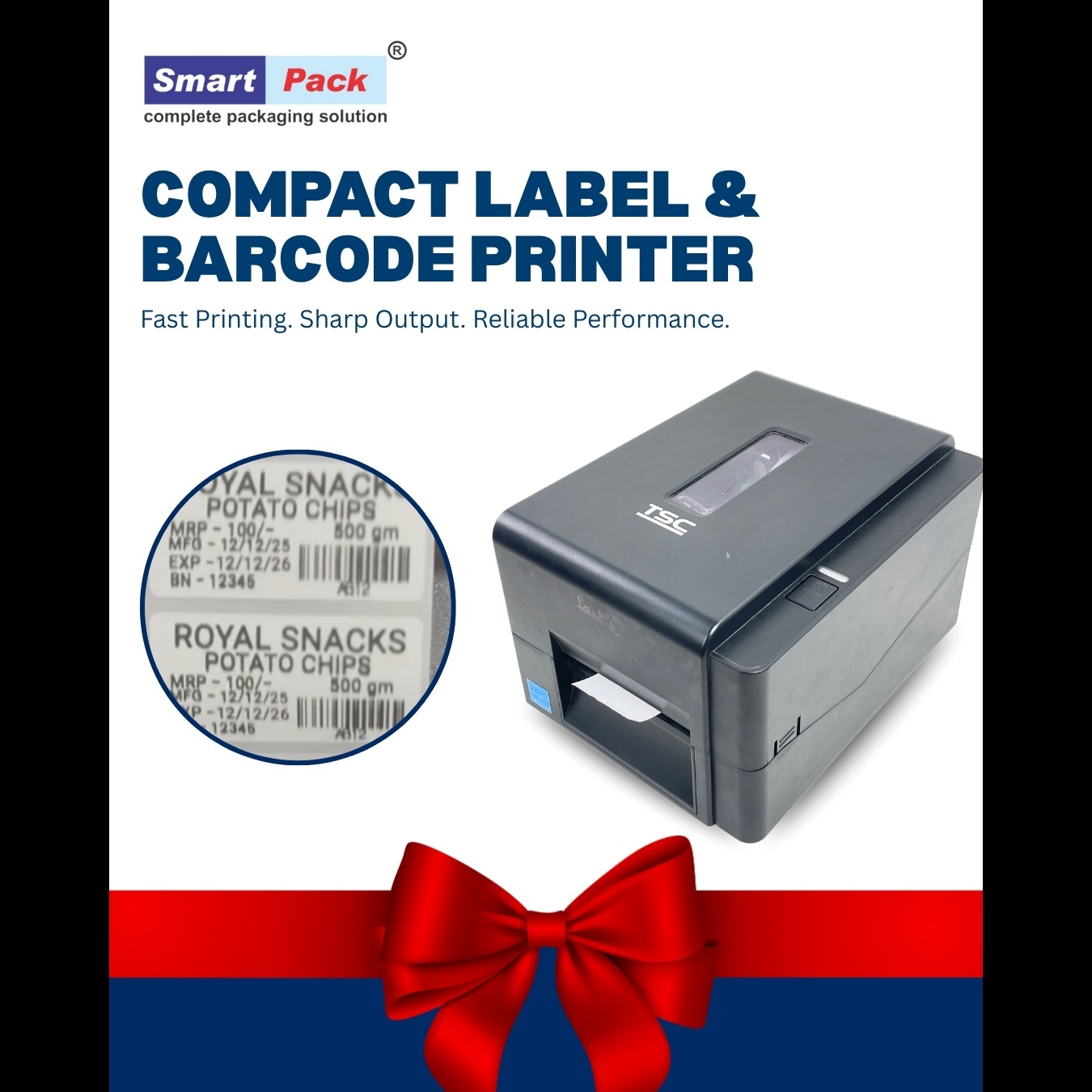 Clear labels and accurate barcodes are essential for smooth operations and strong brand presentation. The compact label & barcode printer is designed to deliver sharp prints, fast output, and consistent results—making it perfect for retail, warehousing, manufacturing, and packaging units. Its space-saving design fits easily on worktables while handling high-volume labeling tasks with precision. From product labels to barcodes and pricing tags, this printer helps improve traceability, inventory management, and overall workflow efficiency. ✔ Compact & space-saving design ✔ Sharp, scannable barcode printing ✔ Ideal for retail, packaging & warehouse use 📩 DM Smart Pack for complete labeling solutions