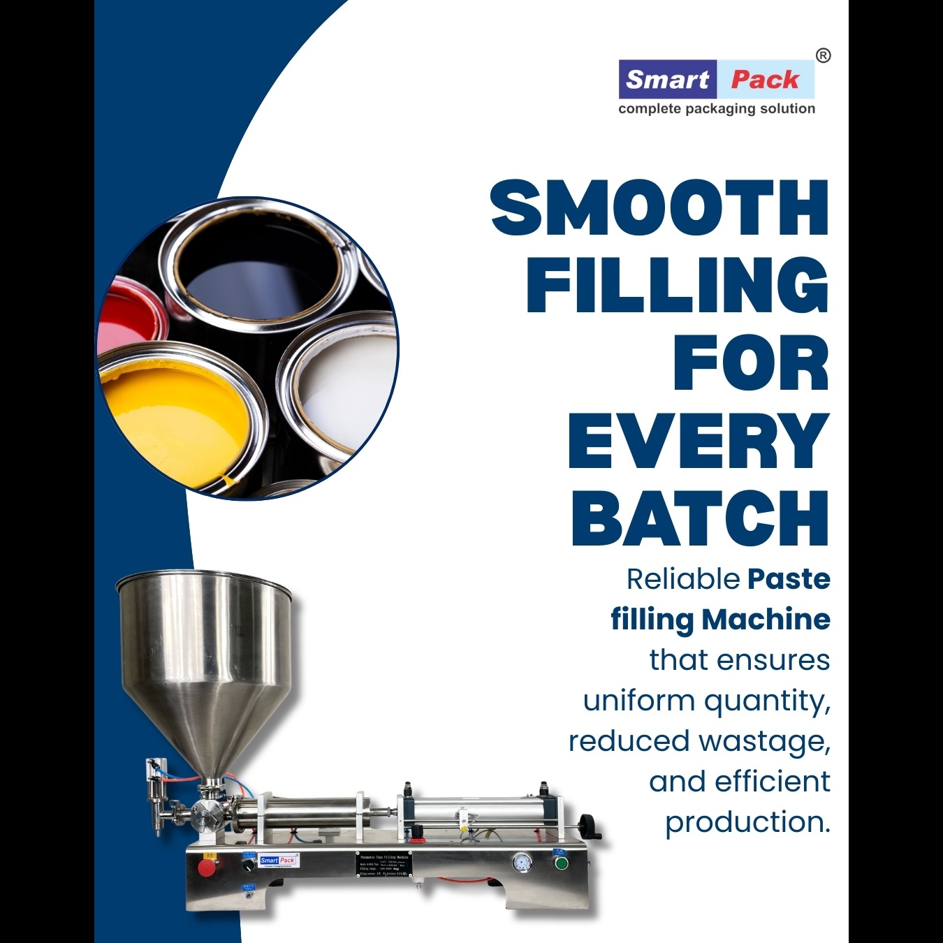 Bringing color to life, one precise fill at a time. At Smart Pack, we provide the complete packaging backbone for the paint, coatings, and renovation industry. Advanced tech for a vibrant world. Explore our range of Paste Filling Machines today!